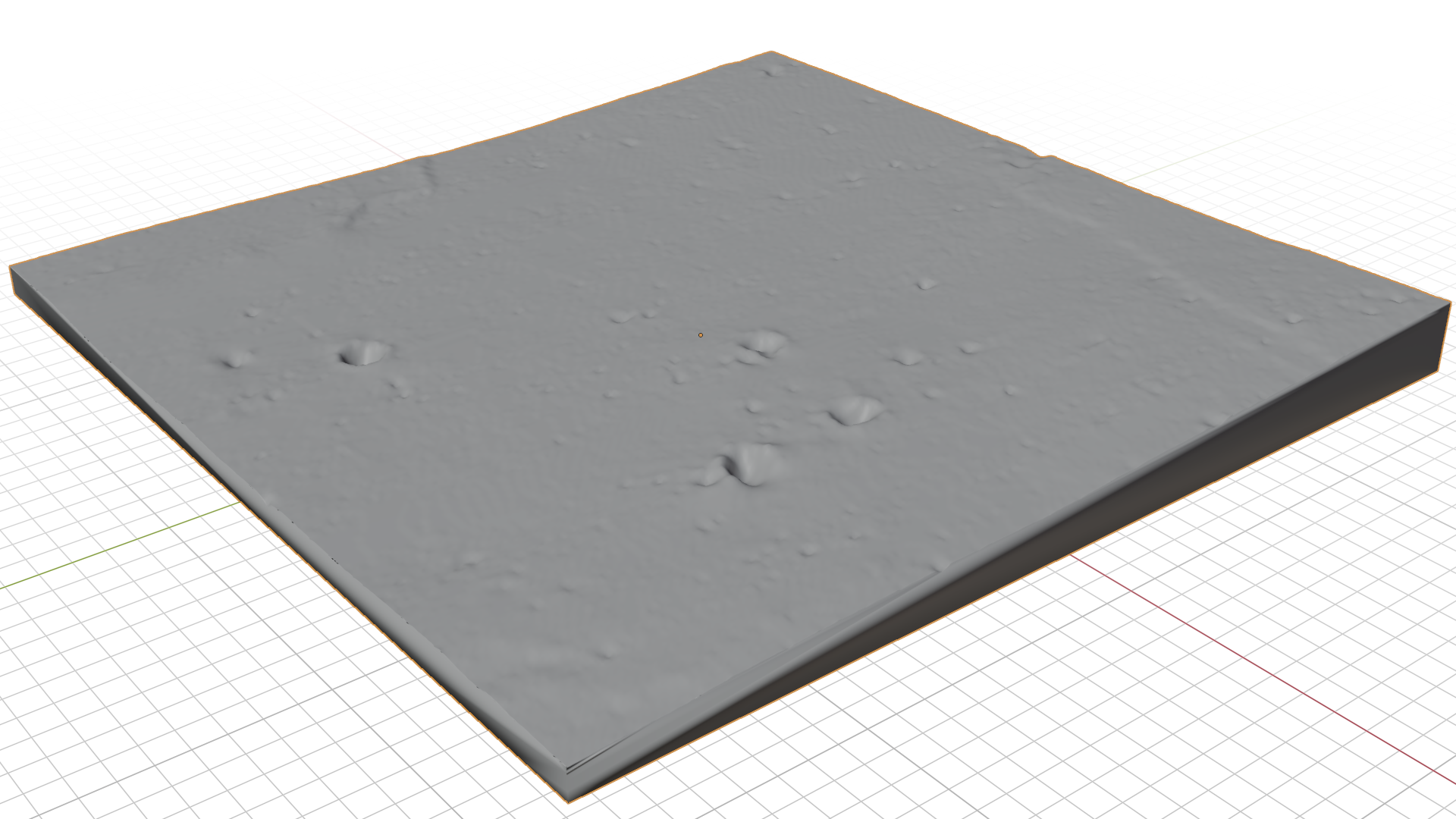 Sea of Tranquility: Height map of the area around the Apollo 11 landing site (30x30 km). Exaggerated 60 times in the Z axis for better visualization.