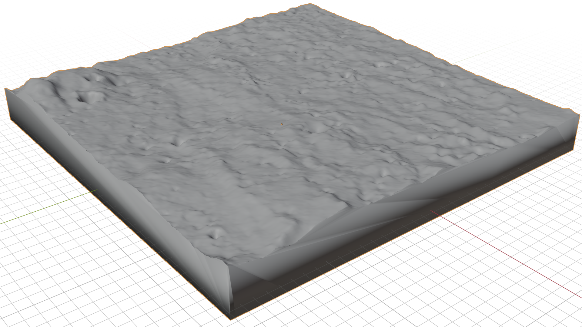 Fra Mauro: Height map of the area around the Apollo 14 landing site (30x30 km). Exaggerated 35 times in the Z axis for better visualization.