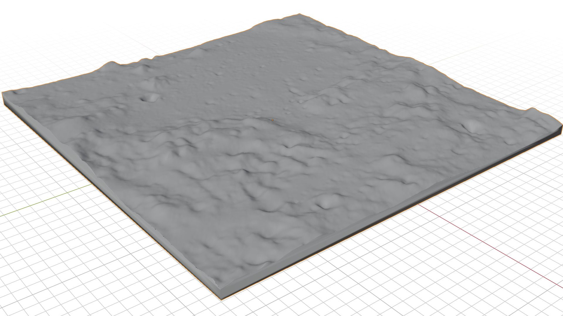 Descartes Highlands: Height map of the area around the Apollo 16 landing site (30x30 km). Exaggerated 35 times in the Z axis for better visualization.