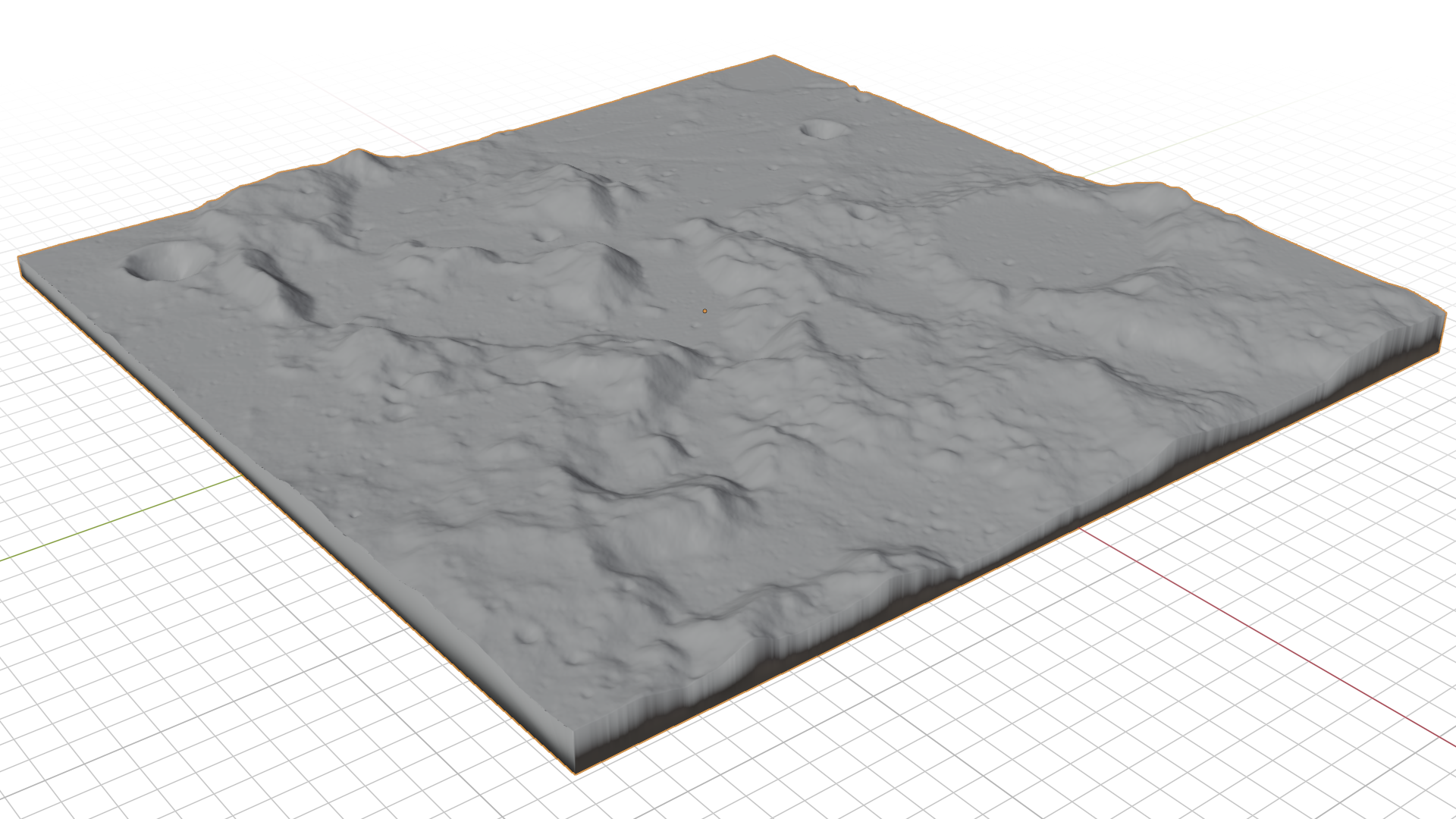 Taurus-Littrow: Height map of the area around the Apollo 17 landing site (60x60 km). Exaggerated 30 times in the Z axis for better visualization.