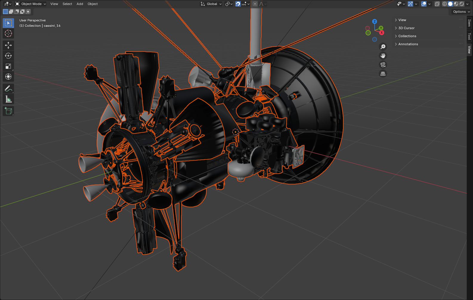 Includes orbiter from CAD models. No thermal blanketing is shown (this would cover most of the central structure of the spacecraft). After two decades in space, NASA's Cassini spacecraft is nearing the end of its remarkable journey of exploration. Having expended almost every bit of the rocket propellant it carried to Saturn, operators are deliberately plunging Cassini into the planet to ensure Saturn's moons will remain pristine for future exploration.