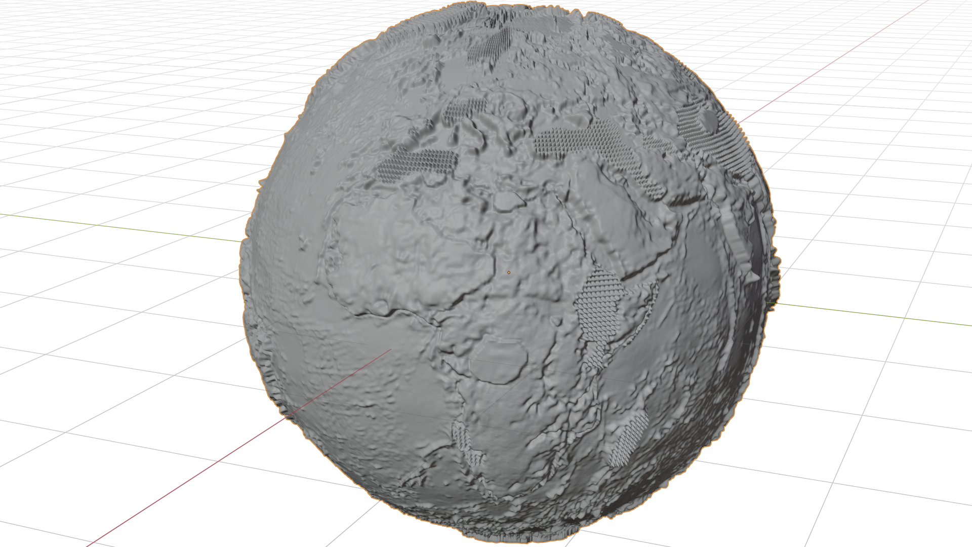 Planet 3D prints were produced by using current NASA data when available. In some cases (rocky planets and the Moon) the topographic data was enhanced in altitude and then tested for usability to ensure that the texture was discernible but not too rough for finger touch. For Jupiter, in particular, the HST imagery was mapped to a sphere and enhanced with custom textures that would allow the most prominent features of the planet would be enhance with patterns that were easily discerned and understandable. For Earth, the elevated areas (mountainous terrain) were replaced with a custom texture. The topography of the mountain ridges produces spiked unpleasant textures, so the major ridge lines are delineated with a cross lined texture. This allows the user to more appreciate the continuity of the mountain ranges across continents.