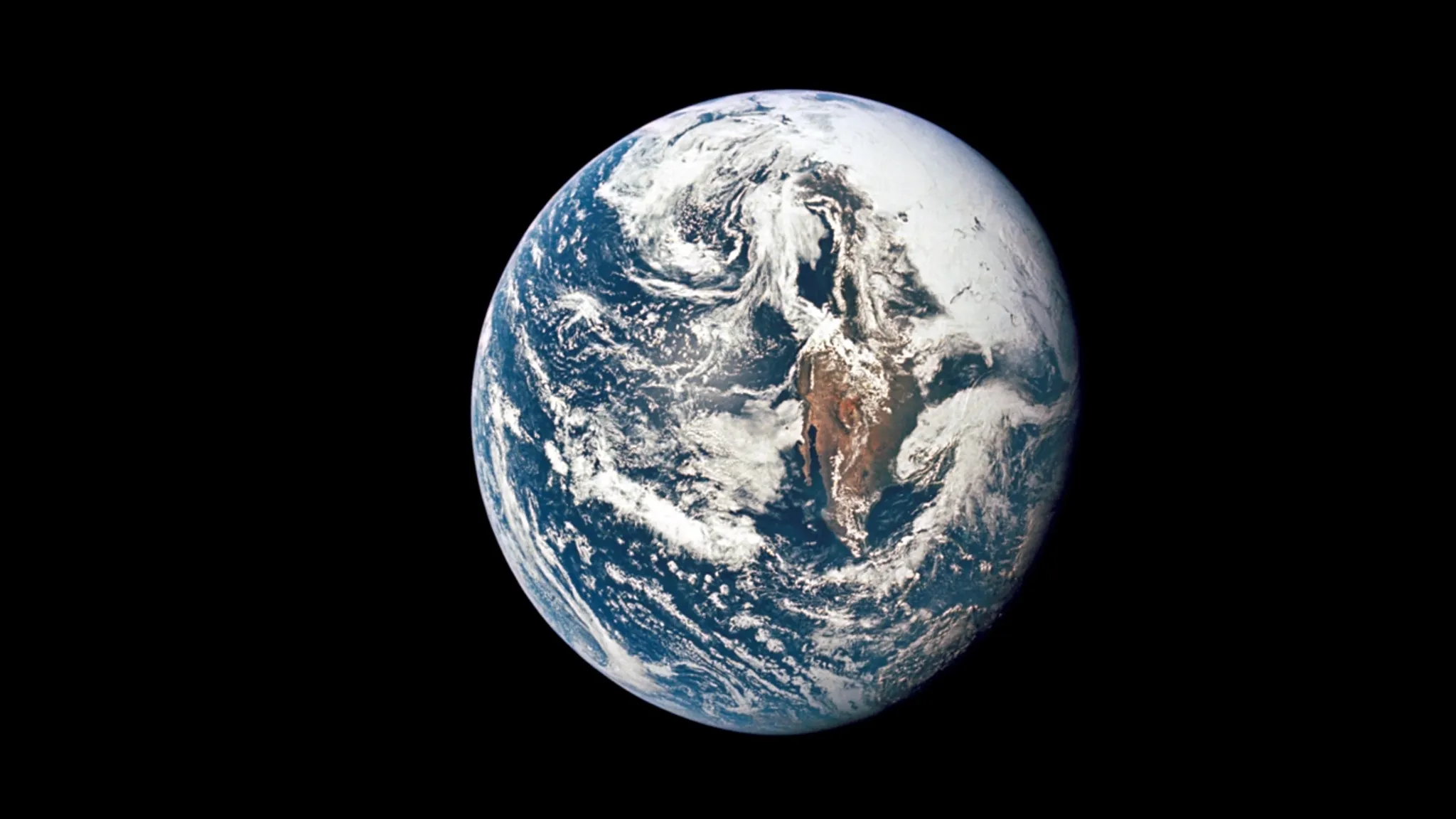 AS10-34-5013 (18 May 1969). A view of the Earth from 36,000 nautical miles away as photographed from the Apollo 10 spacecraft during its trans-lunar journey toward the Moon.