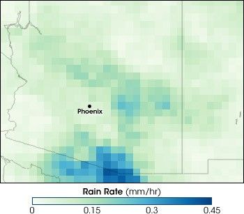“It’s like a pebble in a stream: the water flows around the pebble and converges on the other side,” says Shepherd. In the model, the onshore breeze encountered the city, split, and flowed back together downwind of the city, creating the convergence that generates storms—exactly where TRMM and rain gauges observed higher rain rates. Shepherd saw a similar pattern over Phoenix, Arizona. When he conducted an analysis of a 108-year rain-gauge dataset of rainfall patterns around Phoenix, Arizona, he found that the urban heat island circulation over the city may interact with air flowing down a nearby mountain to generate extra rain in a suburb northeast of the city. TRMM data also confirmed the presence of this anomaly. So the way a city influences rain may differ depending on its location and what other factors influence weather in the region.