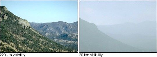 While the regions the EPA needs to monitor grow larger, the size of the particles they need to track is growing smaller. In 1997, under the Clean Air Act, the EPA issued a new set of National Ambient Air Quality Standards for fine particulate matter, or PM2.5, which are particles with a diameter less than 2.5 microns. These particles are so tiny—a micron is only one millionth of a meter—that an individual particle can only be seen with a microscope. Spewed by the trillions out of power plants, automobile exhaust pipes, fireplaces, and forest fires, these particles mix with each other and with larger particles to create a hazy blanket that often spreads far from the original source. The EPA calls pollution caused by aerosols “particle pollution.”