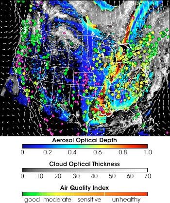 Aside from its being an interesting example of how complex our weather is, what’s so important about this story? To Szykman, who works for the Environmental Protection Agency (EPA), what’s important is that most local air quality forecasters in the locations where the pollution ended up didn’t even know it was coming. That’s a situation Szykman is determined to change. He thinks he can give local air quality forecasters better advance warning of significant regional pollution events by fusing the EPA’s local, ground-based air quality measurements with NASA’s satellite perspective of pollution. By combining this information with weather forecasts from the National Oceanic and Atmospheric Administration’s (NOAA) National Weather Service, Szykman and his colleagues will give forecasters a new view of how pollution moves over a region, like meteorologists track weather systems moving across the country.