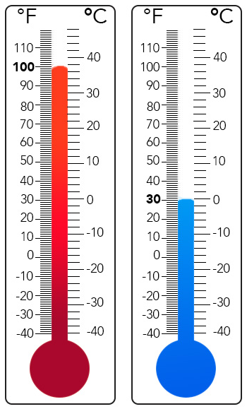 The summers (left) are hot and dry with temperatures reaching up to 38°C (100°F). In the winter (right), temperatures stay around -1 °C (30°F) and are cool and moist.