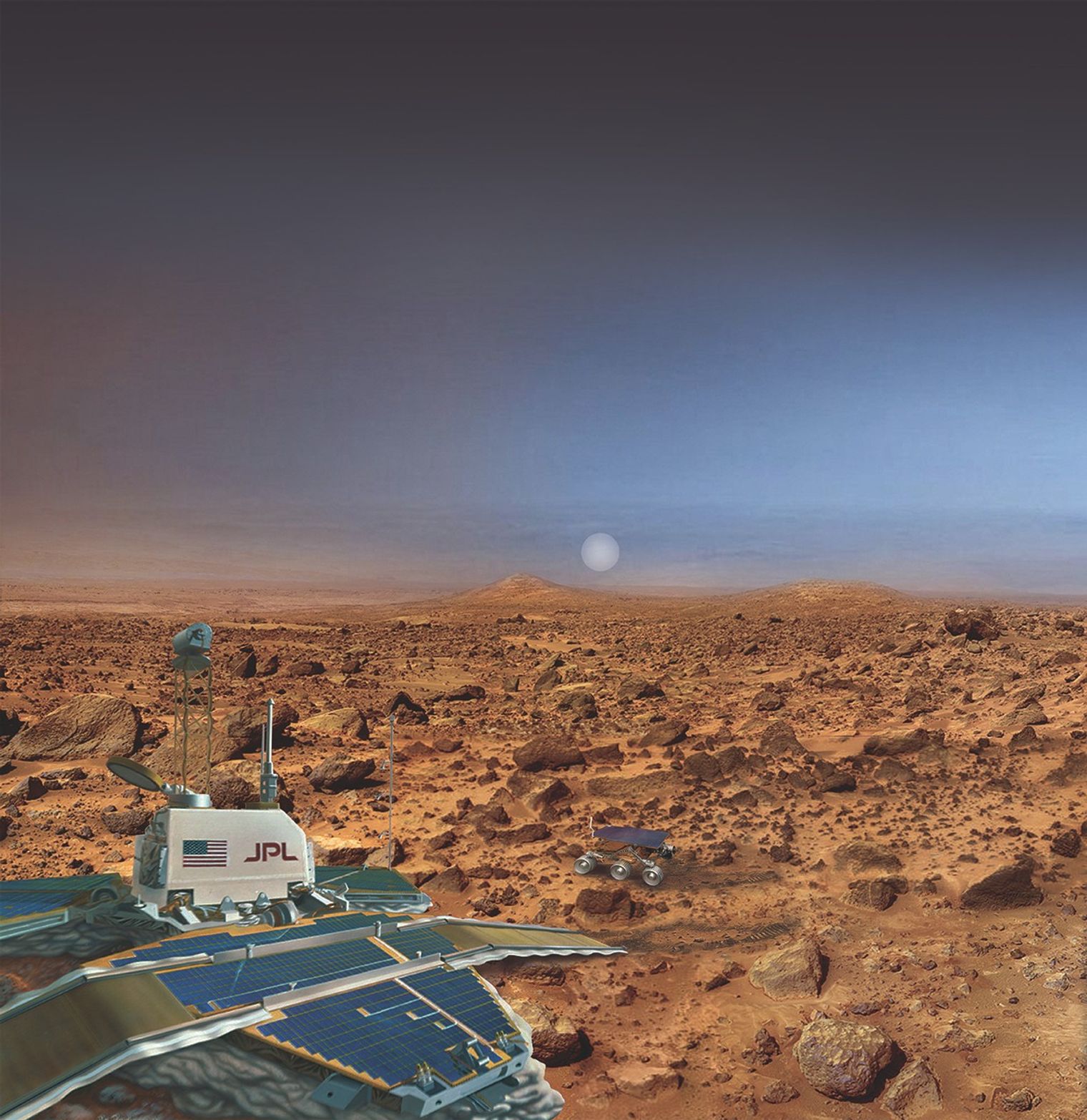 An artist's rendering of Mars Pathfinder, which consisted of a lander and the first-ever robotic rover on the surface of the Red Planet.