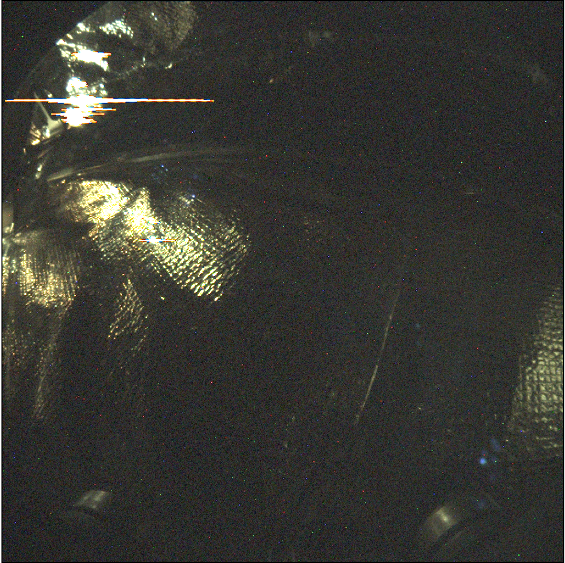 This long-exposure image (24 seconds) was taken by Instrument Context Camera (ICC) of NASA’s InSight Mars lander. The image shows some of the interior features of the backshell that encapsulates the spacecraft. The backshell carries the parachute and several components used during later stages of entry, descent, and landing. Along with the heatshield, the backshell protects NASA’s InSight Mars lander during its commute to and entry into the Martian atmosphere.
