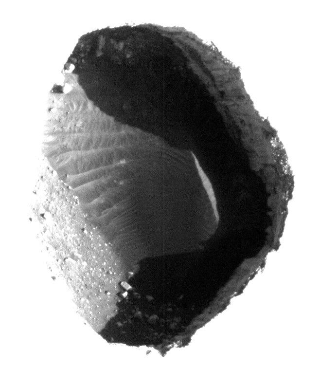 This enhanced image shows the inside of a rimless pit about 180 meters (591 feet) in diameter, northwest of the mountain Ascraeus Mons in the northern hemisphere of Mars. The pit has a very steep eastern wall (on the right) and a more gently sloped western wall. Shadows and overhangs obscure some of the interior, but this stretched-brightness image shows boulders and sand ripples on the floor.