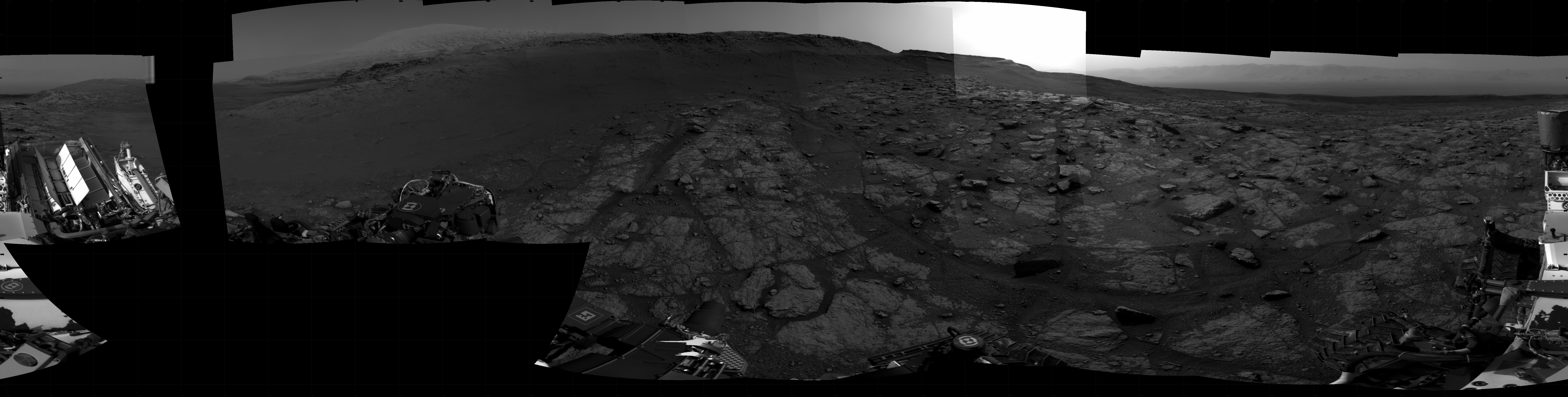 NASA's Mars rover Curiosity took 25 images in Gale Crater using its mast-mounted Right Navigation Camera (Navcam) to create this mosaic. The seam-corrected mosaic provides a 360-degree cylindrical projection panorama of the Martian surface centered at 188 degrees azimuth (measured clockwise from north). Curiosity took the images on November 20, 2020, Sol 2947 of the Mars Science Laboratory mission at drive 2382, site number 83. The local mean solar time for the image exposures was 4 PM. Each Navcam image has a 45 degree field of view. CREDIT: NASA/JPL-Caltech