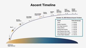 NASA’s Europa Clipper spacecraft will be launched on a SpaceX Falcon Heavy rocket from the agency’s Kennedy Space Center in Florida. This graphic shows the expected timeline of milestones immediately following liftoff if the mission launches at the beginning of…