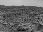 Photojournal note: Sojourner spent 83 days of a planned seven-day mission exploring the Martian terrain, acquiring images, and taking chemical, atmospheric and other measurements. The final data transmission received from Pathfinder was at 10:23 UTC on September 27, 1997. Although mission managers tried to restore full communications during the following five months, the successful mission was terminated on March 10, 1998.