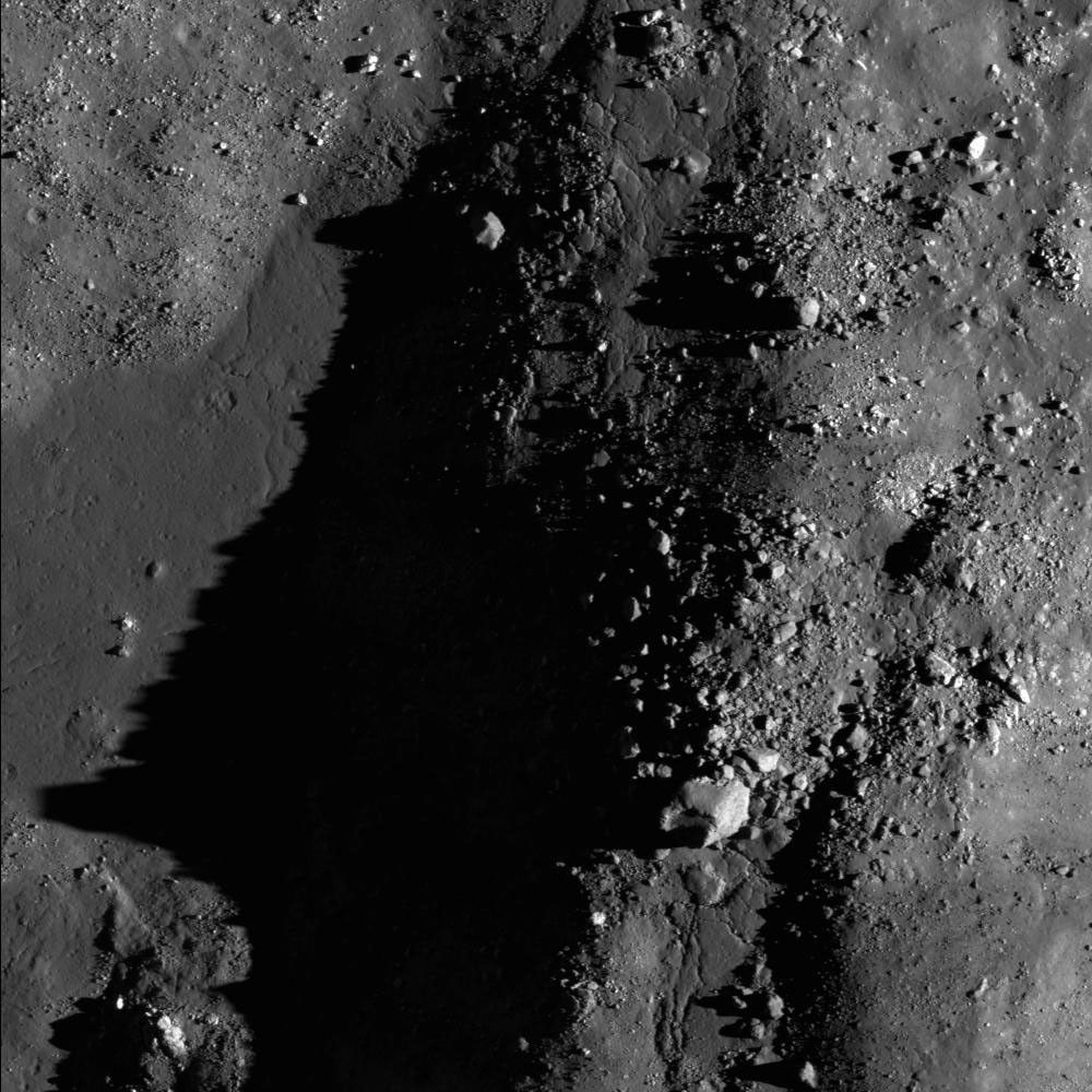 The chaotic floor of Necho crater attests to the dynamic environment immediately after the impact event. NAC image M115502787R, scene is 960 meters, or 3149 feet, across.