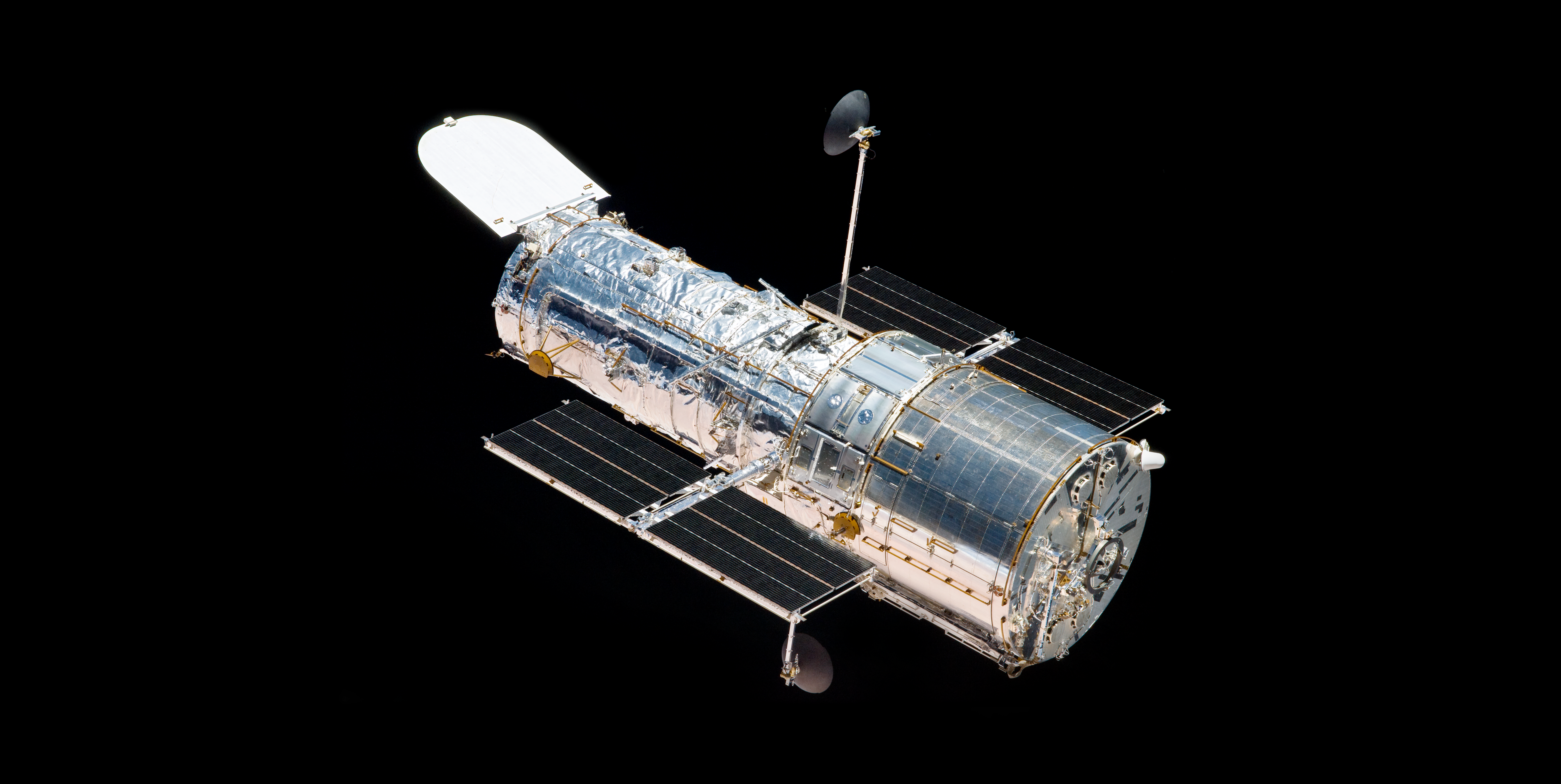 The Hubble Space Telescope floats against the background of space as it is released by the Space Shuttle Atlantis after Servicing Mission 4 (SM4, STS-125) on May 19, 2009, 7:57 a.m. (CDT). The shuttle and telescope had been linked for the better part of a week while astronauts conducted five spacewalks. The mission is expected to be the last astronaut visit to the telescope.