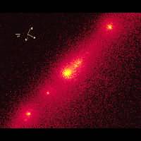 The image was taken with the Wide Field and Planetary Camera (WFPC), in PC mode, on July 1, 1993. The Hubble observations show that the cometary nuclei are probably less than three miles (5 km) across, as opposed to earlier estimates of nine miles (I4 km).