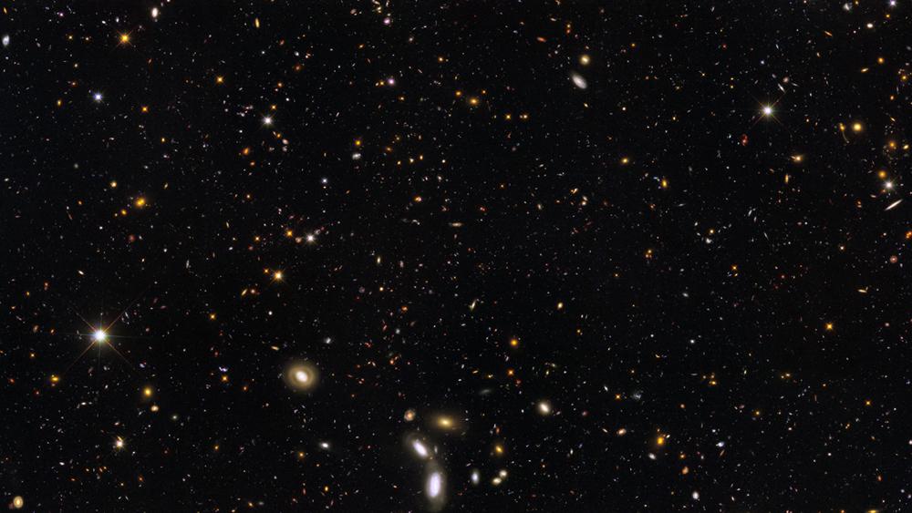 This image is a composite of many separate exposures made by the ACS and WFC3 instruments on the Hubble Space Telescope using different filters that isolate broad wavelengths. The color results from assigning different hues (colors) to each monochromatic image. In this case, the assigned colors are: Blue: F225W (UV) + F275W (UV) + F336W (U) + F435W (B) Green: F098M (blue grism) + F606W (V) + F775W (i) + F850LP (z) Red: F098M (blue grism) + F125W (J) + F160W (H)