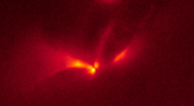 This sequence of images from the Hubble Space Telescope shows a pulse of light emanating from the protostellar object LRLL 54361. Most if not all of this light results from scattering off circumstellar dust in the protostellar envelope. An apparent edge-on disk visible at the...
