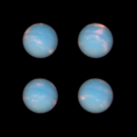 These four Hubble images of Neptune were taken with the Wide Field Camera 3 on June 25-26, during the planet's 16-hour rotation. The snapshots were taken at roughly four-hour intervals, offering a full view of the planet. The images reveal high-altitude clouds in the northern and southern hemispheres. The clouds are composed of methane ice crystals.