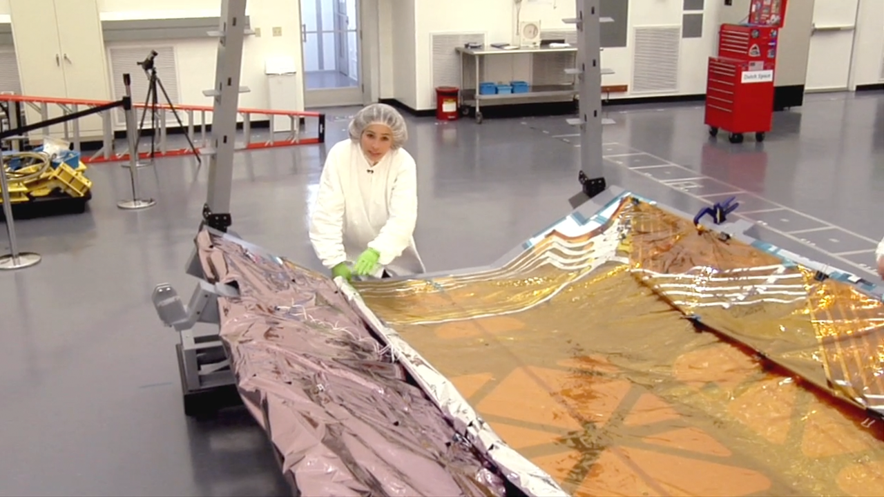 Engineers at Northrup Grumman in Redondo Beach, Calif., designed Webb's sunshield. It consists of five layers of a space-age material called Kapton. Each layer is only about as thick as a human hair, but has to be strong enough to withstand the harsh environment of space. The orientation of these layers also helps dissipate any incoming heat before it has a chance to affect the telescope. The sheets of the sunshield will be coated with different materials, depending upon their position. The two layers exposed to the Sun will be coated with silicon to reflect the Sun's energy. The remaining three layers will be coated with aluminum to reflect any residual heat that the first two layers were unable to dissipate.