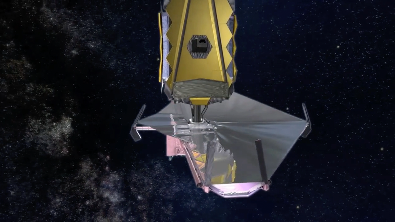One of the dominant features of the Webb telescope is its tennis-court-sized sunshield. The sunshield protects the observatory from unwanted light, keeping it cool and allowing it to detect heat from faraway objects in the universe.