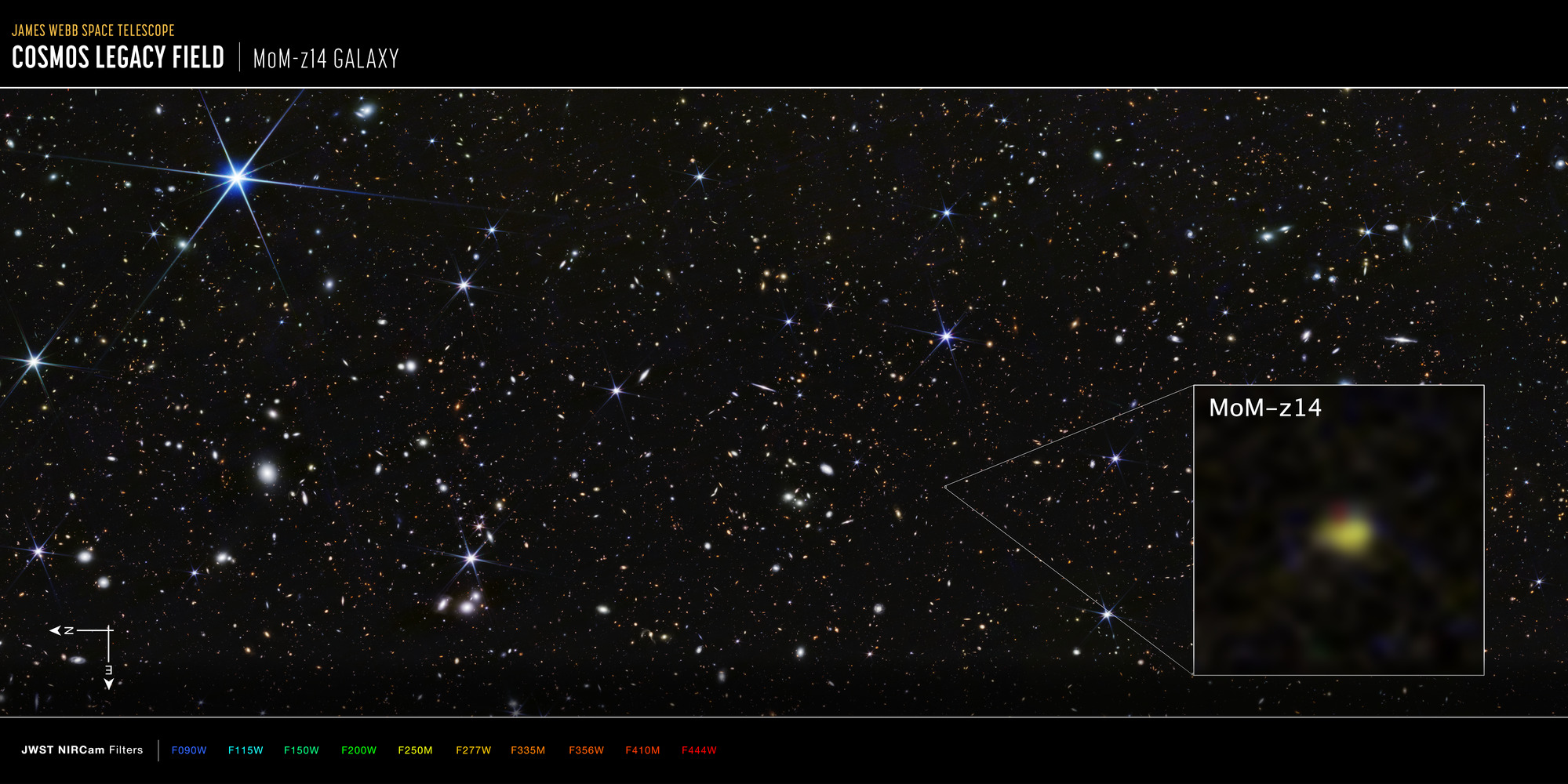Like some other galaxies Webb has discovered in the early universe, MoM-z14 is brighter, more compact, and more chemically enriched than astronomers expected to find in this early era. While it may pass out of record books quickly as the farthest galaxy, MoM-z14 will still play a role in helping astronomers and theorists reach new understanding of the earliest chapters in the universe’s story.