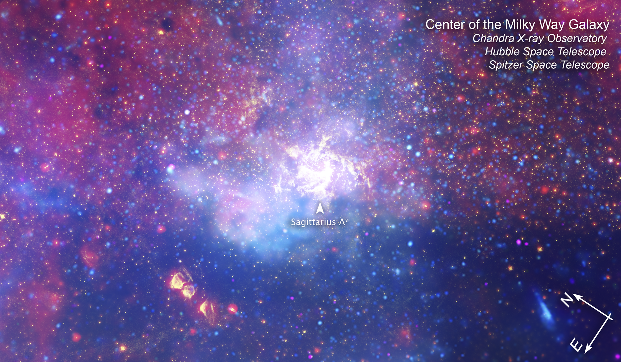 Galactic Center (Chandra, Hubble, Spitzer Compass Image)
