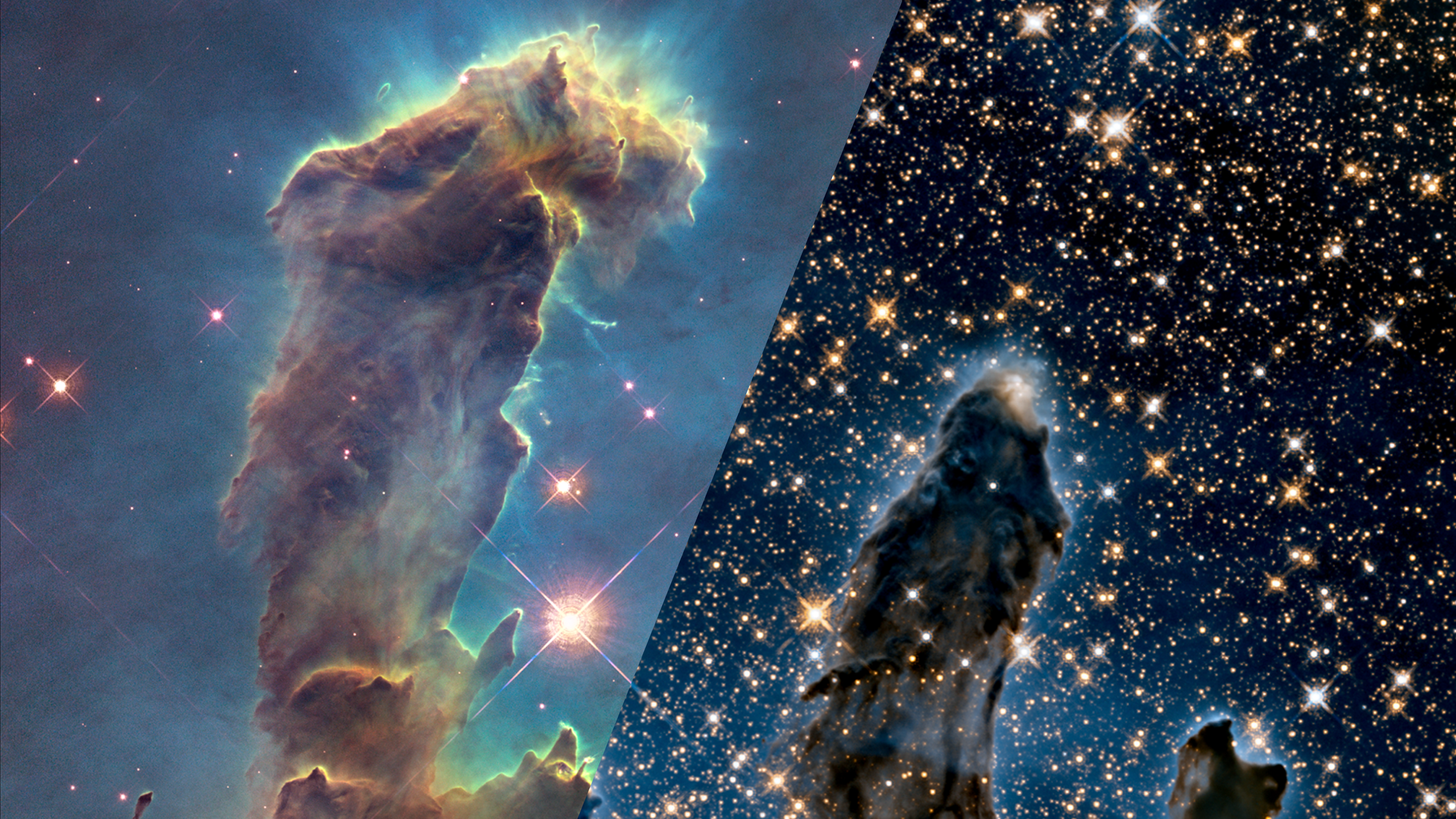 Optical: The pillars of cold gas and dust absorb visible light, concealing stars forming within them.