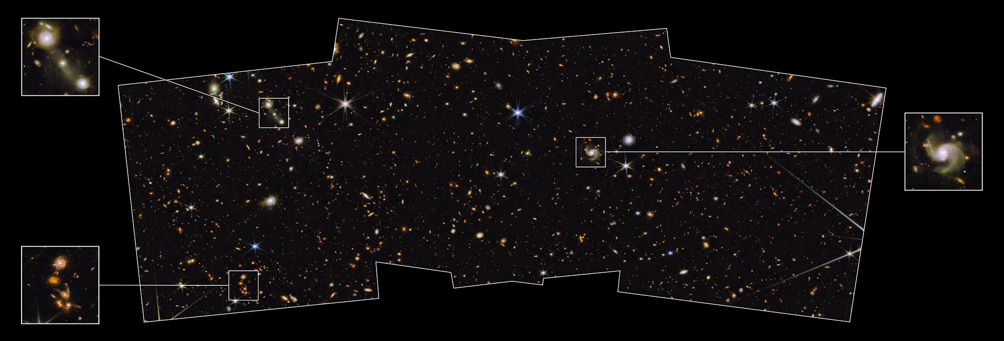 - CreditNASA, ESA, CSA, JWST PEARLS Team, Rolf Jansen (ASU), Jake Summers (ASU), Rosalia O'Brien (ASU), Rogier Windhorst (ASU), Aaron Robotham (UWA), Anton Koekemoer (STScI), Christopher Willmer (University of Arizona); Image Processing: Rolf Jansen (ASU), Alyssa Pagan (STScI)