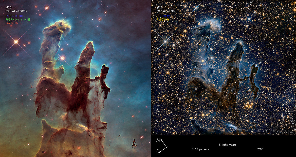 Pillars of Creation in Visible and Near-Infrared (Hubble)