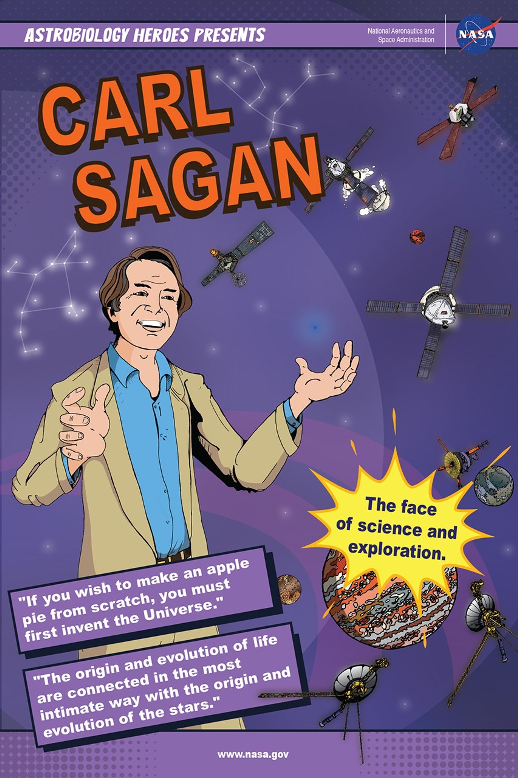 The name Carl Sagan is synonymous with excellence in science communication. From his seminal work in ensuring astrobiology was woven into the foundations of space exploration at NASA to his groundbreaking book and tv show, Sagan has inspired generations of scientists to consider the possibilities of the cosmos and our place within it. Sagan was an early career scientist when he was invited to participate in some of the first discussions of exobiology and astrobiology research at NASA. He went on to contribute to numerous NASA missions that shaped our understanding of life’s potential beyond Earth. To read more about his role in the history of astrobiology at NASA, check out Issues 1, 2, and 4 of the Astrobiology Graphic Histories.