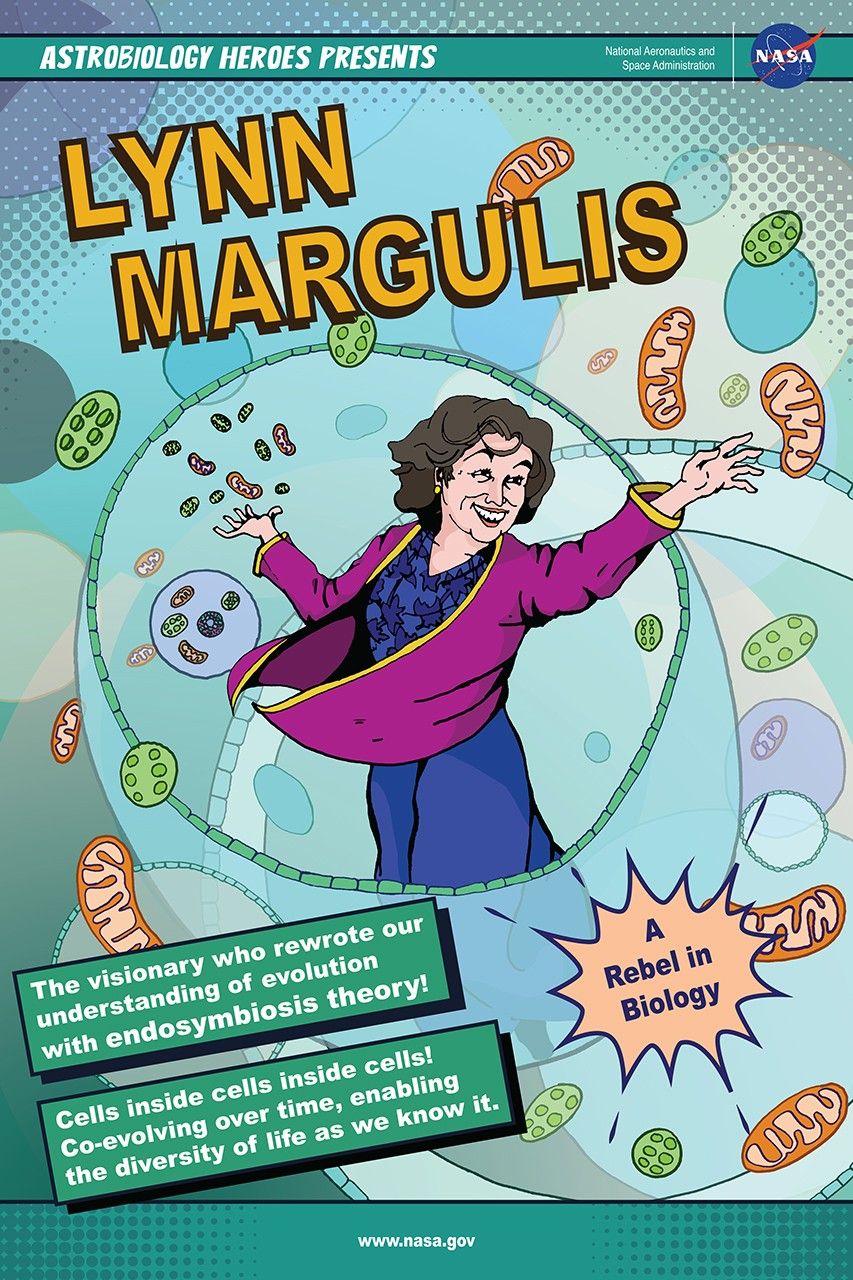 Lynn Margulis was the first female principal investigator of NASA’s Exobiology Program and pushed the boundaries of knowledge in many fields related to astrobiology. Margulis was funded for her research in microbial evolution and organelle heredity. She championed the significance of symbiosis in evolution, now the leading theory to describe how eukaryotic cells evolved from prokaryotic origins. The endosymbiotic theory states that some of the organelles in eukaryotic cells were once prokaryotic microbes. This was a major advancement in the field of evolutionary biology and altered scientific understanding of the evolution of life on Earth. To read more about her role in the history of astrobiology at NASA, check out Issue 7 of the Astrobiology Graphic Histories.