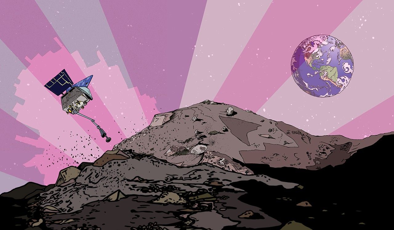 NASA’s Origins, Spectral Interpretation, Resource Identification, Security-Regolith Explorer (OSIRIS-REx) spacecraft is the first U.S. mission to return samples from an asteroid to Earth. OSIRIS-REx left Earth in 2016 traveled to Bennu, a carbon-rich asteroid that records the earliest history of our Solar System. The spacecraft delivered the sample to Earth on Sept. 24, 2023. Scientists are studying samples returned by the mission to determine Bennu’s physical and chemical properties. To read more about OSIRIS-REx, check out Issue 3 of the Astrobiology Graphic Histories.