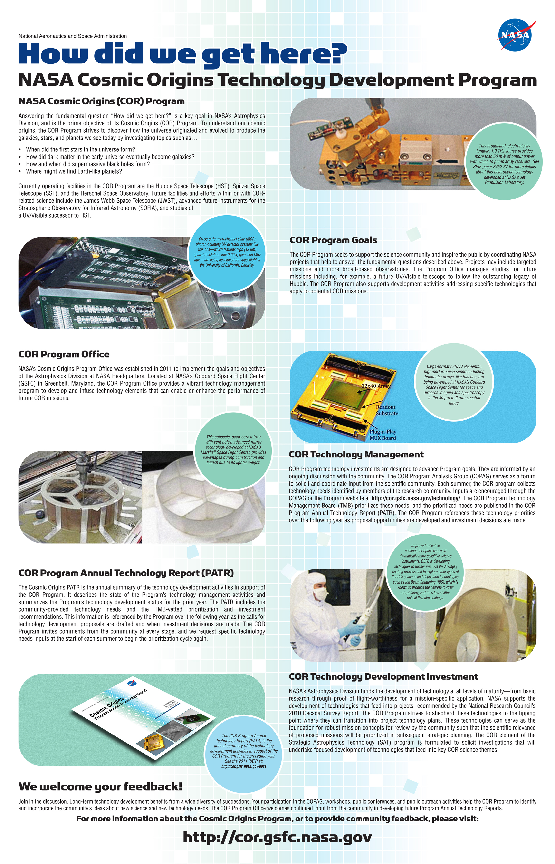2014 M. Clampin and T. Pham, "NASA's Physics of the Cosmos and Cosmic Origins technology development programs", Proc. SPIE, Vol 9154, doi: 10.1117/12.2060582