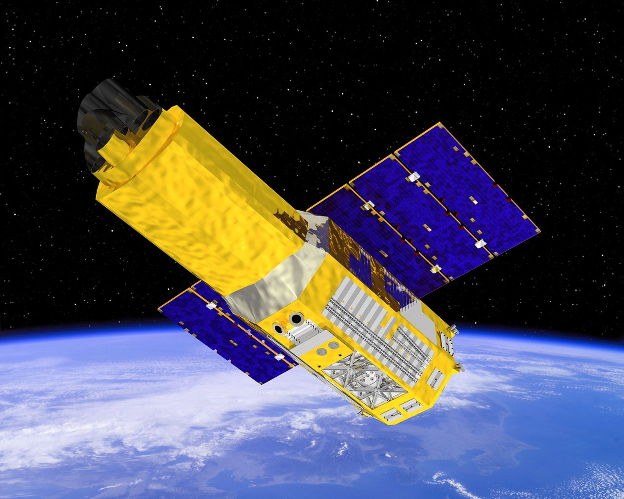 An illustration of the Chandra X-ray Observatory in space.