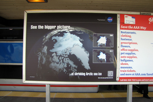 The idea was to meet Americans where they live; that is, to bring science to the people, instead of waiting for the people to find science. Twelve NASA missions collaborated on images, messages, and strategic development of the Know Your Earth public awareness campaign. (Click on the link to see all of the images.)