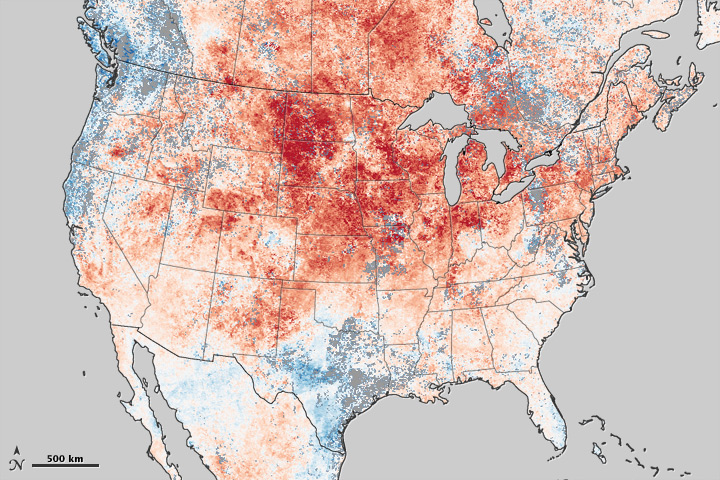 Poyang Lake in China has seen better days. Once China’s largest lake, it shrunk to just a fraction of its usual size this winter. Scientists are working to understand exactly what’s causing the decline in water levels, but an ongoing drought has surely played a role. The Three Gorges Dam, which is upriver, has likely contributed to the drawdown as well. Remote Sensing of the Environment recently published a study of data from the MODIS instrument that documents the dramatic fluctuation in lake levels between 2000 and 2010. The authors conclude Poyang Lake covered 3,163 square kilometers (1,220 square miles) in August of 2010, but only 714 kilometers (275 square miles) in October of 2010. (In recent months, the size of the lake has dipped to less than 200 square kilometers (77 square miles.) Overall, the scientists found the size of the lake has declined by about 30 square kilometers (12 square miles) a year.