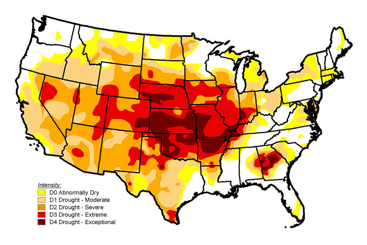 Remember all of those stories last summer about the drought in Texas? The drought did ameliorate some in the winter, but then the interior Southwest dried out, which is exactly what you would expect during a La Niña winter. And then it really expanded north in the late winter, which was more surprising. Now it’s gotten up into the Midwest and even up into New York where I am. I think the extension toward the Northeast, which is remarkable, has been caused by some random atmospheric variability that’s being added on to the forcing coming from the tropical Pacific Ocean.