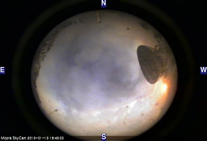 Not so for an Australian bushfire  in January 2013 that passed through the campus of Siding Spring Observatory in New South Wales. The world-class astronomy facility houses numerous powerful telescopes. They’re designed to peer out into space, but webcams on a few of the telescopes captured remarkable images of smoke billowing and flames blazing. See, for instance, the all-sky view from the MOPRA SkyCam shown above.