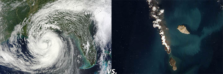 Hurricane Isaac (35%) vs. New Volcanic Island (65%)