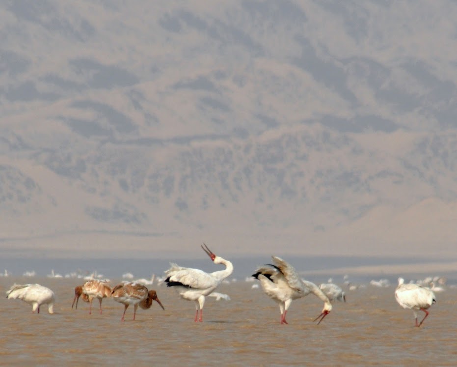 Our March 17, 2016, Image of the Day offered a satellite perspective on how sand mining has changed the coastline of Poyang Lake, the largest freshwater lake in China. The photographs below provide a view of sand mining from the ground. James Burnham, an ecologist with the University of Wisconsin and the International Crane Foundation, took the photos while conducting field research on wintering waterbirds at Poyang Lake. “Sand mining has compromised the ecological integrity of the lake by contributing to less predictable seasonal water fluctuations and to a series of recent low water events,” he said. “This is a lake that hosts 98 percent of the endangered Siberian Cranes and Oriental White Storks, as well as a significant number of over a dozen other endangered waterbirds in the winter.”