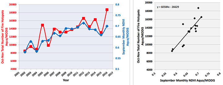 Aqua Detected More Fires in 2016 Than During Any Year Since 2002