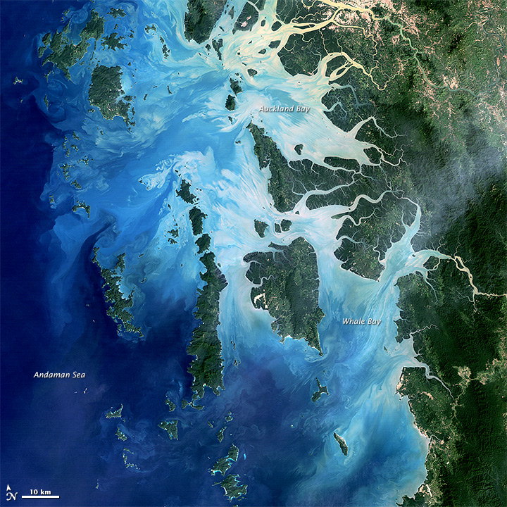 This image is full of fantastic reminders about our planet and the science of Earth observation. Sediment flows, forests, and human settlement can all be seen in gorgeous color. But what’s more — the image was acquired by Landsat 5 back in 2004. We are currently two generations further in the Landsat constellation; this image is a vivid reminder of the quality and depth of that legacy. — Joshua Stevens, data visualizer