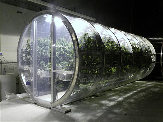 Scientists have made marked developments in growing vegetables in space this spring. Researchers based at Kennedy Space Center have been working with a team from the University of Arizona to create a prototype lunar/Mars greenhouse. The cylindrical, inflatable chamber measures 18 feet long and 8 feet in diameter. It recycles waste and water from astronauts, and uses carbon dioxide they exhale.
