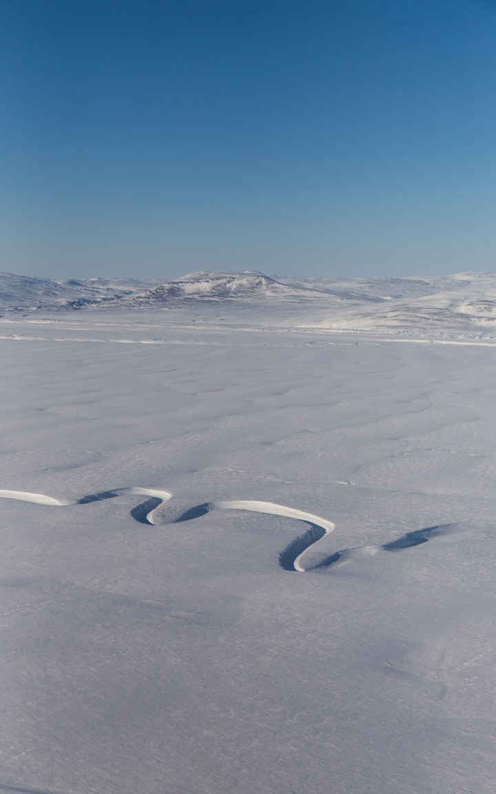 A sinuous meltwater channel on 79 North Glacier. Photo by Jeremy Harbeck.