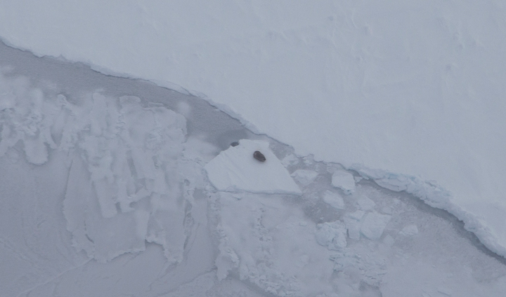 A seal on the sea ice, just northeast of Svalbard. Photo by Jeremy Harbeck.