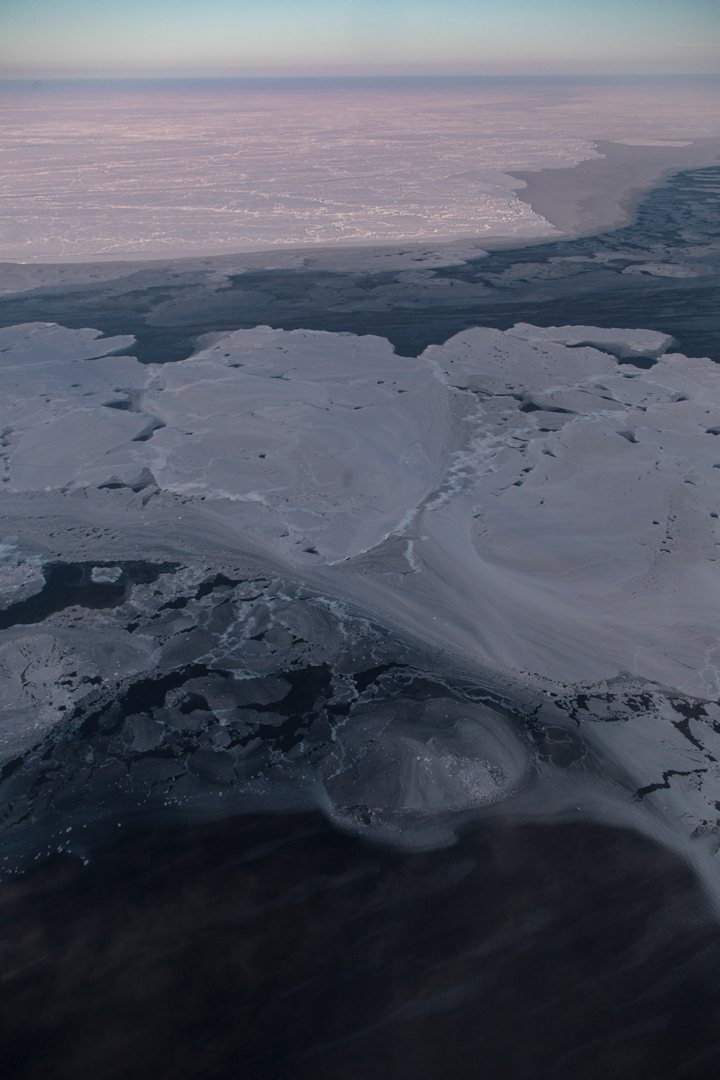 On April 6, researchers flew from Svalbard and surveyed sea ice atop the eastern Arctic Ocean. Below are a few of Harbeck’s favorite photographs from that flight, highlighting the variability of sea ice.