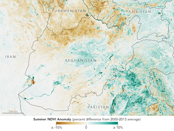 9. Experts use Terra MODIS observations of NDVI — a measure of the greenness of plants — to help anticipate food shortages.