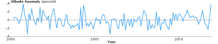 5. Likewise, they have used the CERES sensor to measure whether Earth’s reflectivity—or albedo—has changed. Despite some fluctuations, there does not appear to be a trend.