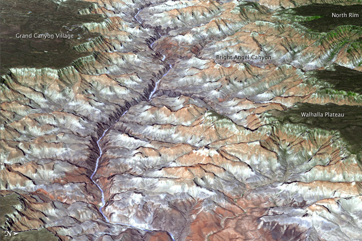 NASA Earth Observatory has existed for just one-fifth the time of Grand Canyon National Park. But over those 20 years, satellites and astronauts have captured some magnificent views of the park from above. Here are some of our favorites.